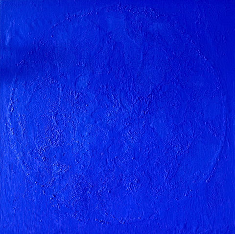 Dans la continuité des mes travaux sur les planètes, ce tableau symbolise notre terre aux contours bleus flamboyants et lumineux .L’addition de peintures à l’huile bleues et le travail des pigments naturels accentue cette notion d’espace vivant.